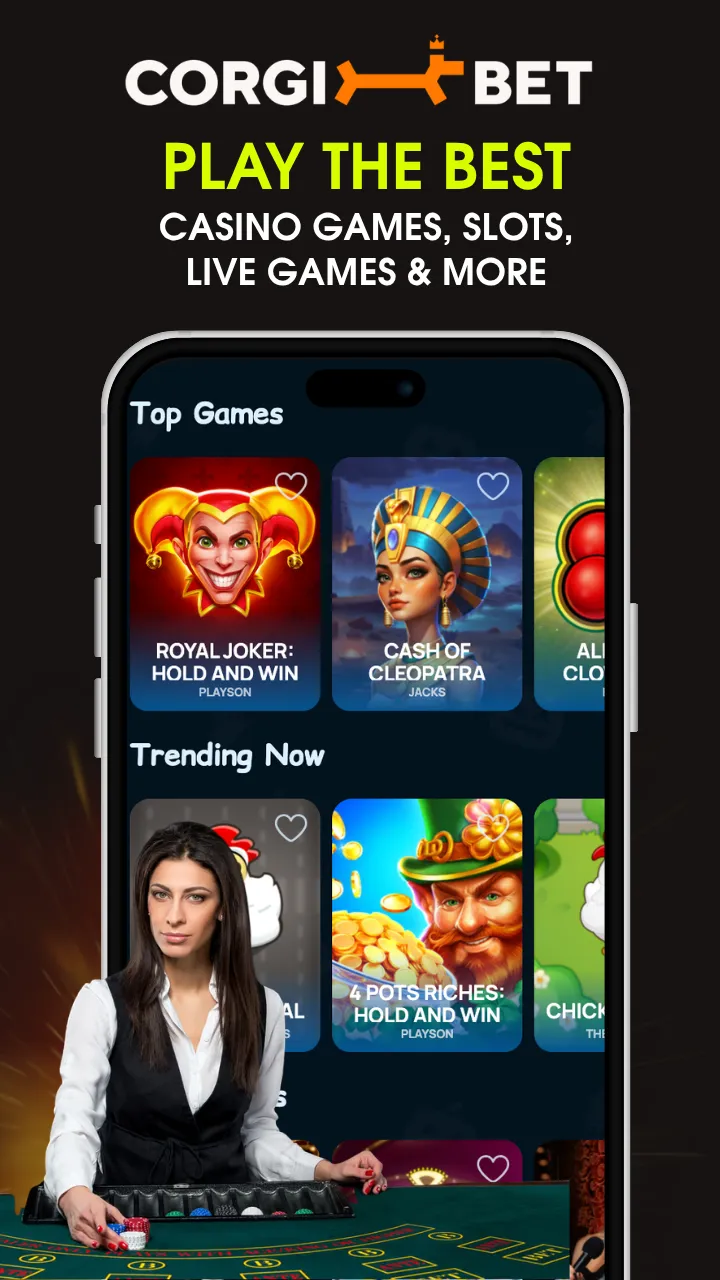 Comprehensive game selection: Enjoy over 1,000 games, including CorgiBet Originals and popular titles from leading developers. Whether slots, table games, or live dealers – the mobile platform offers it all.